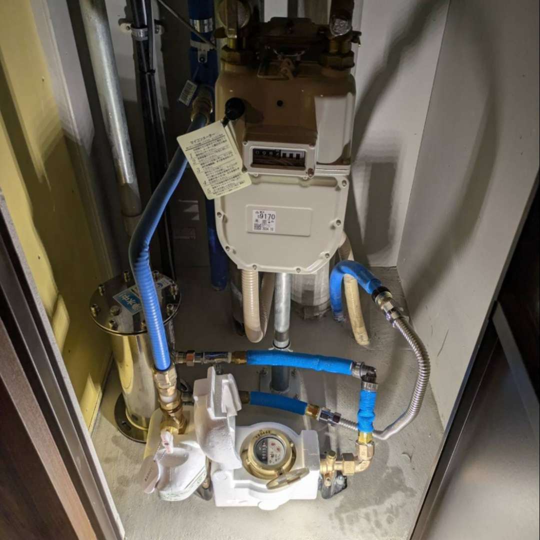 しかし、この扉の中にはガスメーターや給湯器、さまざまな配管がすでにひしめき合っていることが多く、大型の浄水器を置くためのスペースが十分に確保できないケースが少なくありません。