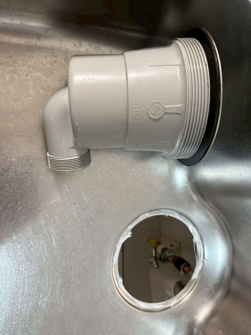 現場を確認したところ、排水ジャバラホースの経年劣化による亀裂が原因であることが判明。マンションの場合、放置すると床下を伝って下階への漏水事故に繋がる恐れがあるため、迅速に部品交換と接合部の補強を行いました。